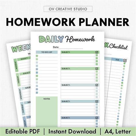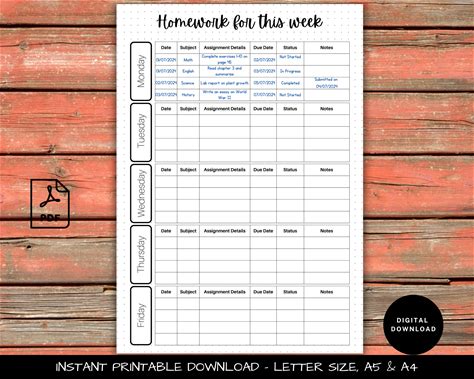 Shop Weekly Student Homework Assignment Sheets