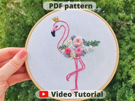 Flamingo Embroidery Pattern: Beginner DIY With Video (PDF Pattern)