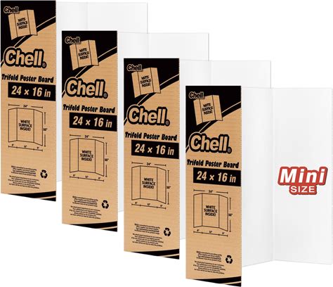 Chell Mini Size Trifold Poster Board, 16" X 24", Small Corrugated Project Boards, White, 4 Pack